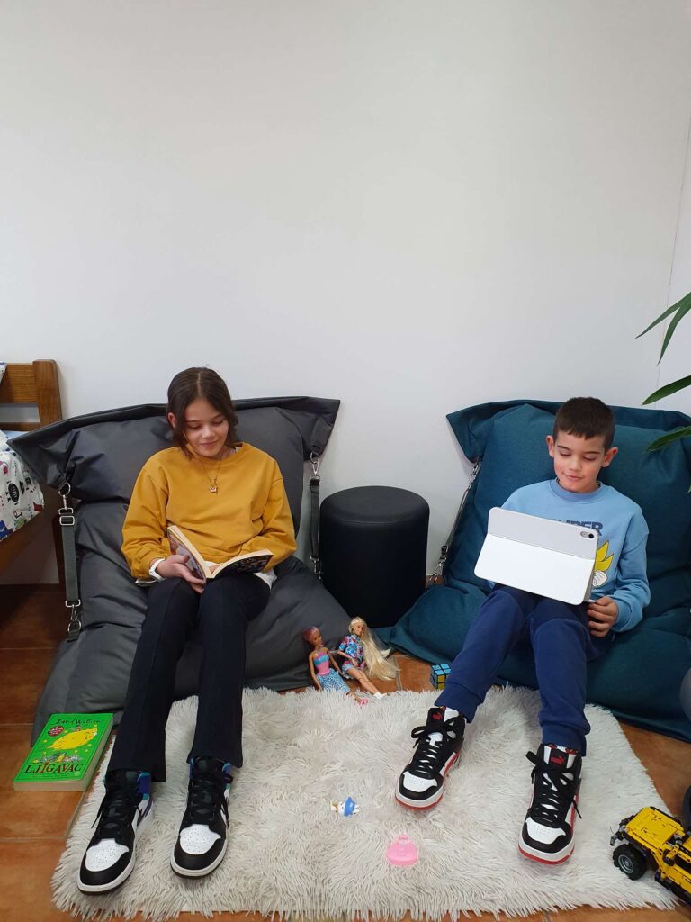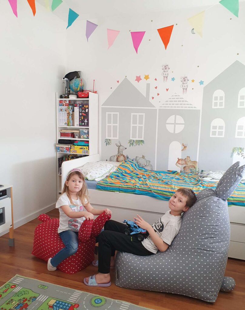 Vreće za sjedenje za djecu su manjih dimenzija i izrađeni od mekanih materijala kako bi bili prikladni za upotrebu u dječjim sobama ili prostorima za igru.
